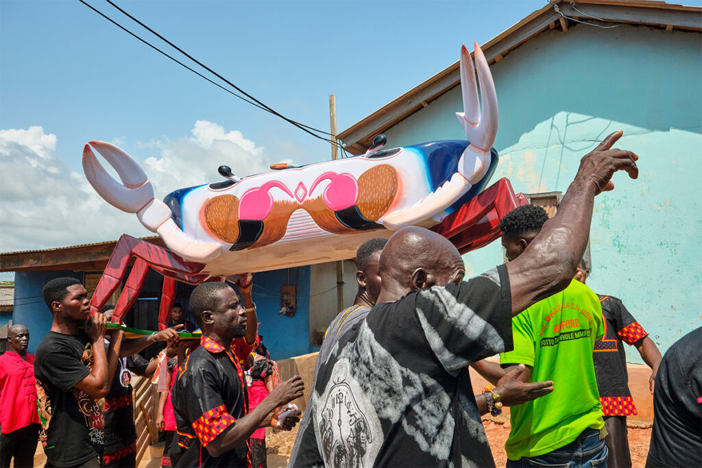 I feretri provenienti dal Ghana suscitano sempre grande interesse nei musei d’arte e nelle gallerie occidentali. Dal 2004 la fotografa ed etnologa Regula Tschumi studia e documenta queste opere d’arte. Opere ricercate che, oltre alla dimensione espositiva, testimoniano il valore culturale attribuito ai riti funebri in Ghana. Grazie al suo pluriennale impegno, Regula Tschumi ci presenta oggi i suoi scatti che evidenziano l’importanza sociale dei riti funebri e di questa forma artistica tanto colorata quanto effimera.